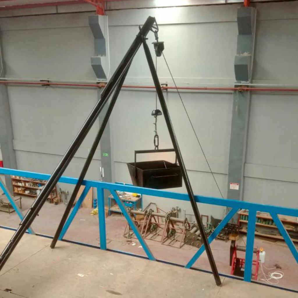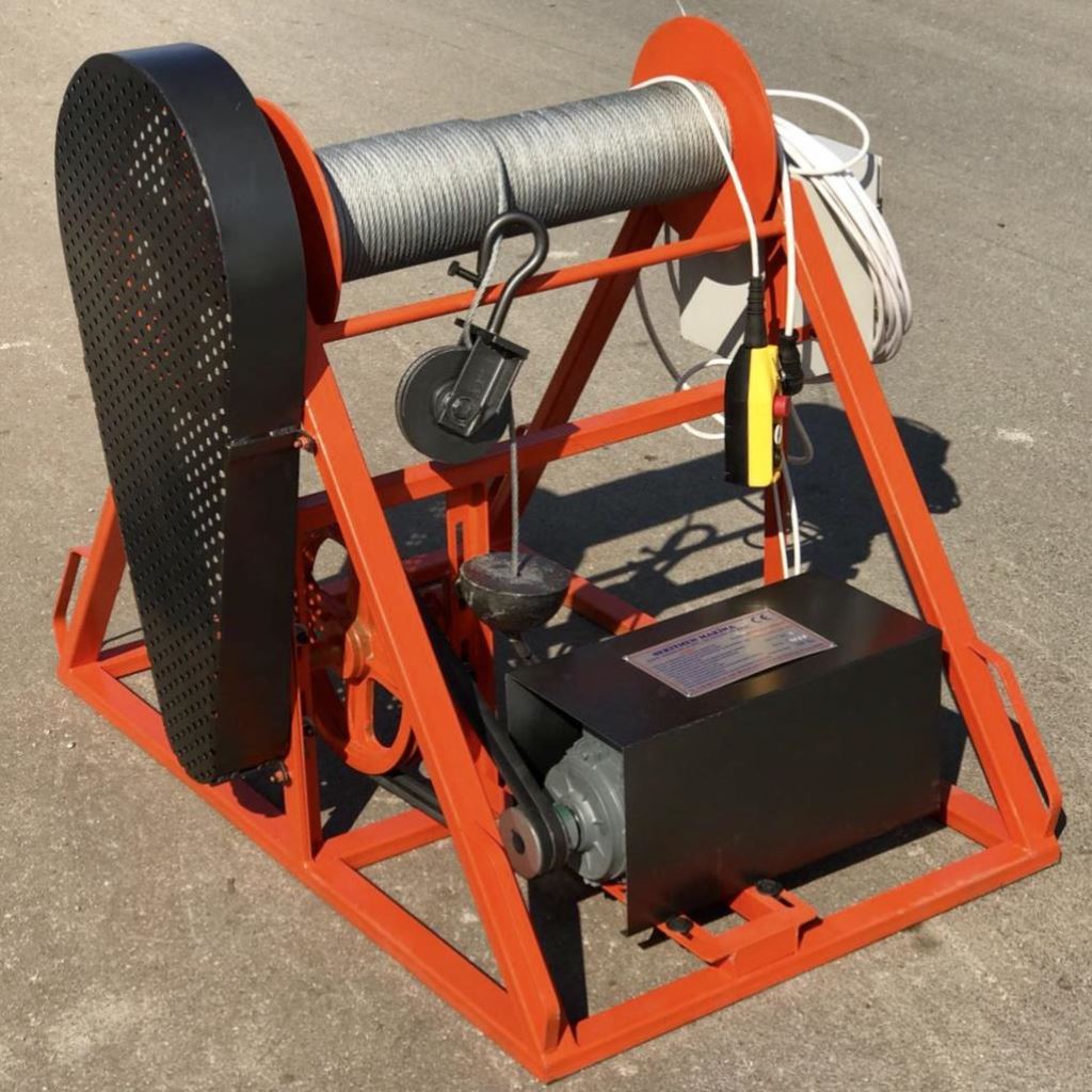 Ground controlled freight crane is used for pull up of construction materials to the working area in construction, warehousing and repair works. It is controlled by remote control or cable control from the ground.
